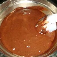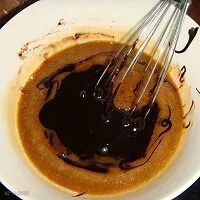 5. 依次加入玉米油,加入融化微凉的黑巧克力。