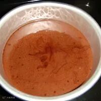 13. 将蛋糕糊倒入6寸圆模中,将烤盘在桌上用力震几下,把内部的大气泡震出来。