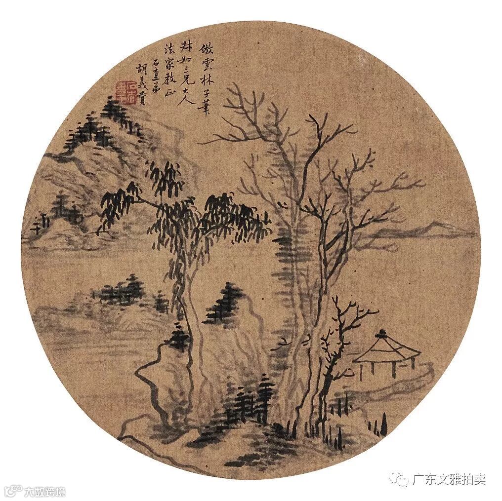 款识:仿云林子笔,叔如三兄大人法家教正,石查弟胡义赞。