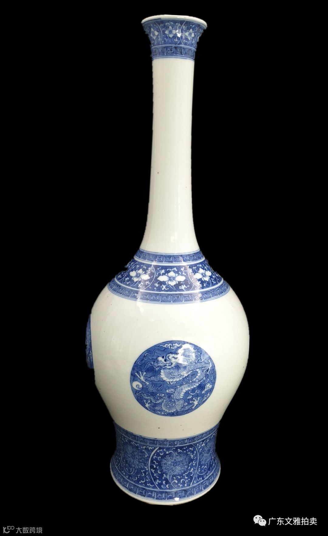 拍号 31 清康熙青花团龙鹤圣月瓶 高50×20cm