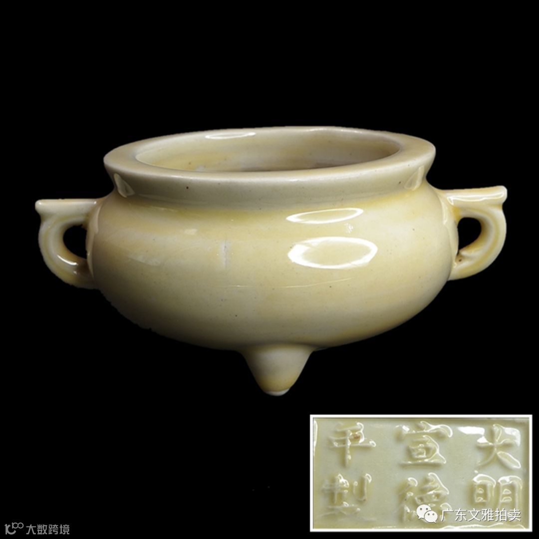 拍号 60 清早 大明宣德制年制款黄釉三足炉