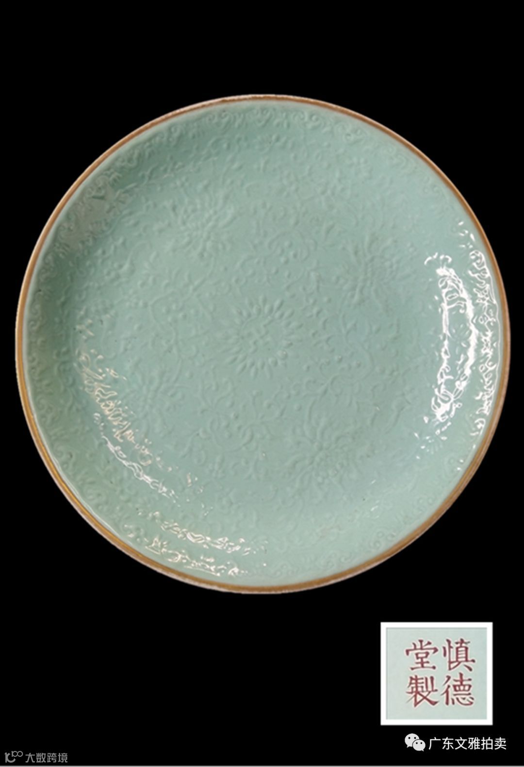 拍号 67 清慎德堂制松石绿地沥粉缠枝菊万字文碟