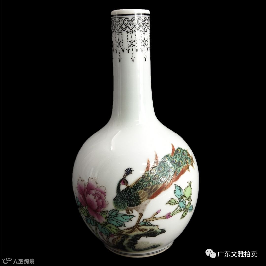 拍号 33 五十年代粉彩孔雀胆瓶 高17×7.5cm