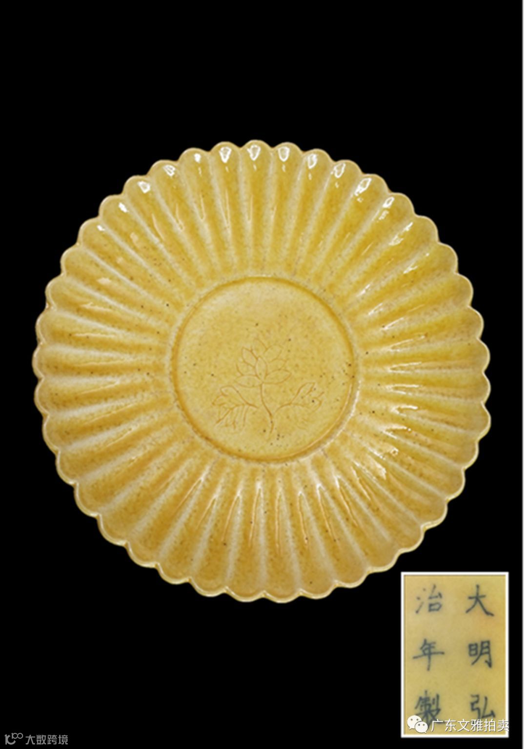 拍号 84 明弘治黄地刻花菊瓣碟 直径11.5×3cm