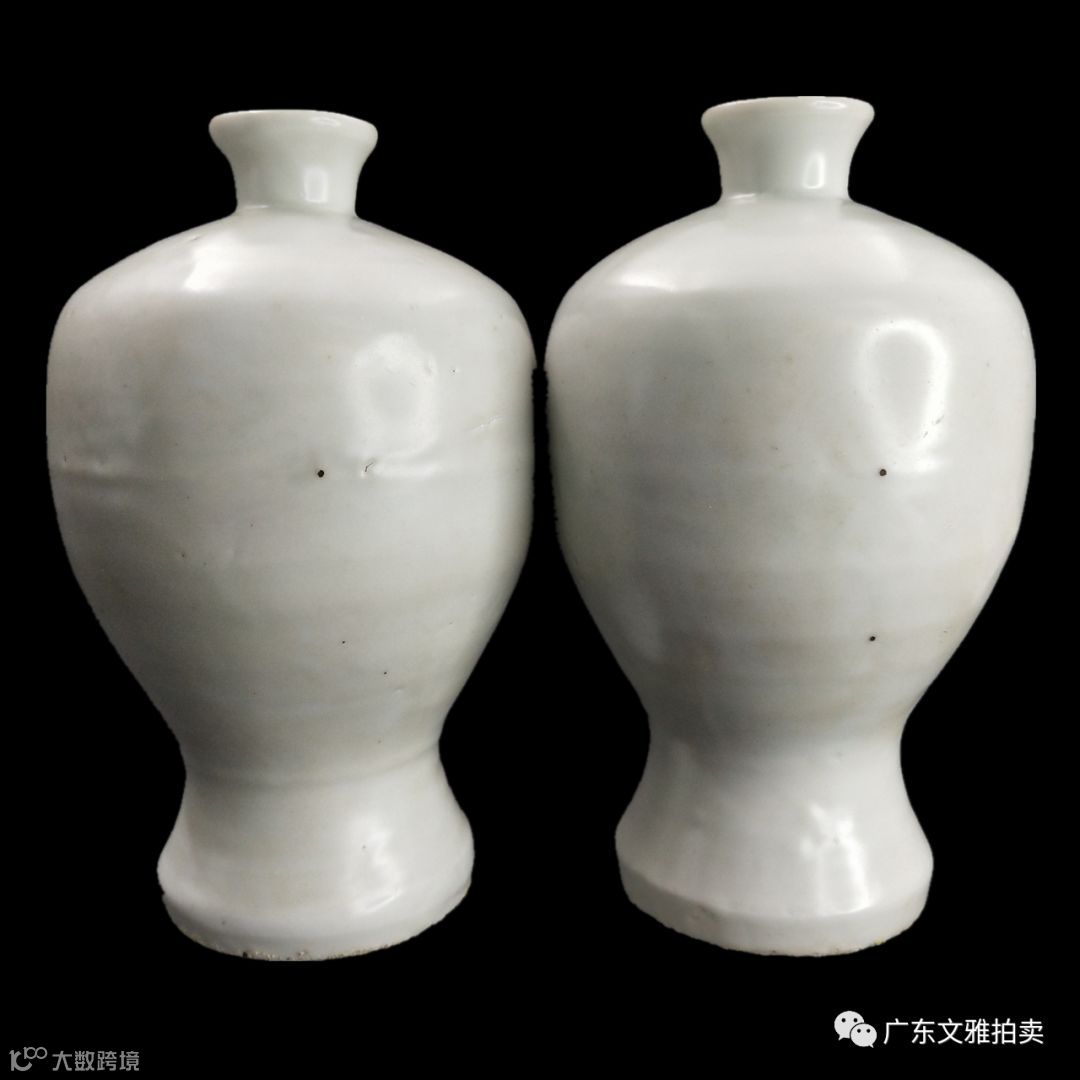 拍号 29 明白釉梅瓶一对 高16×9cm×2