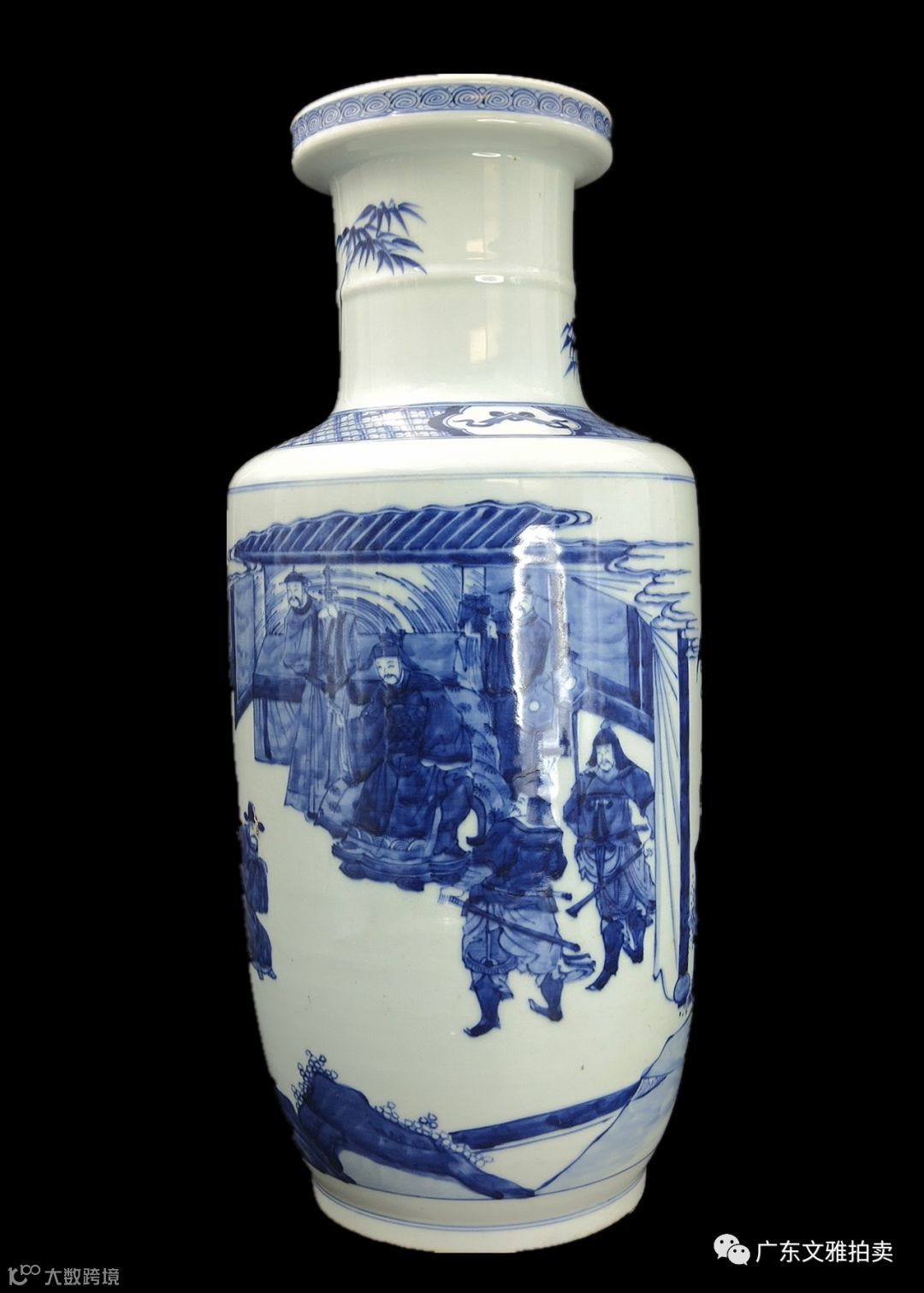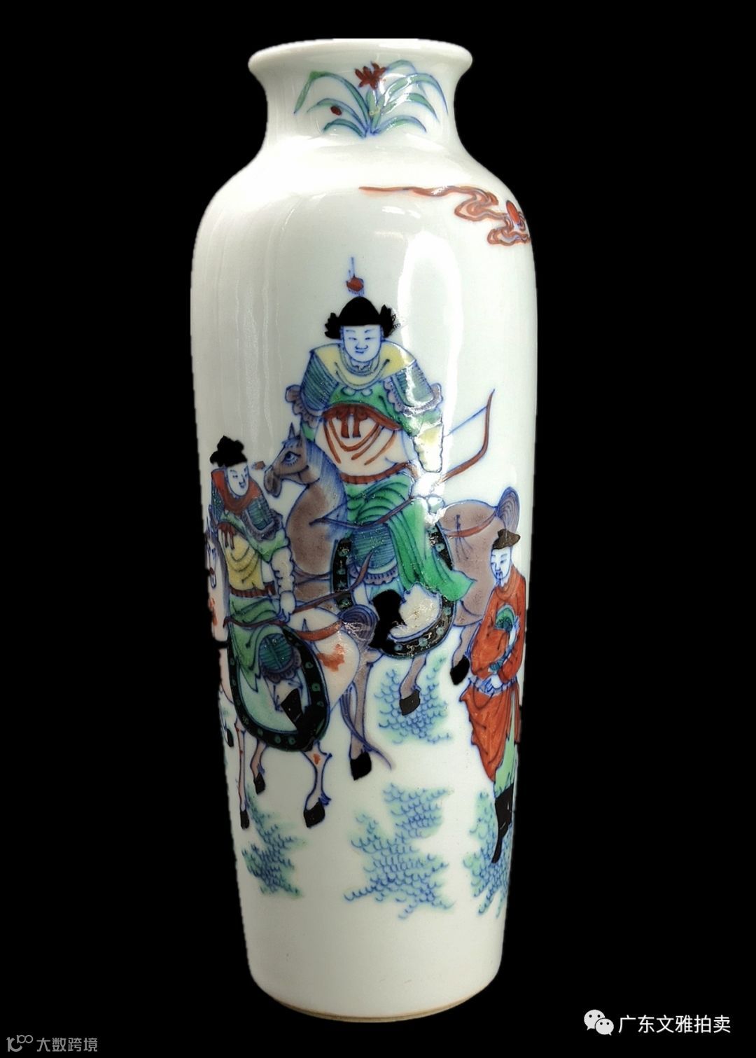 拍号 25 清顺治青花五彩人物故事一统瓶 高23×10cm