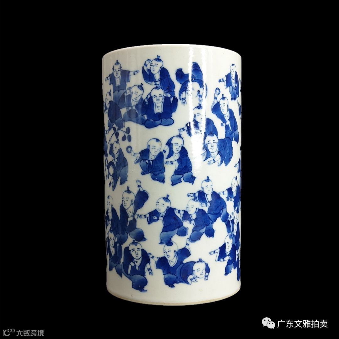 拍号 17 清康熙青花百子图笔筒 高17.5×9cm