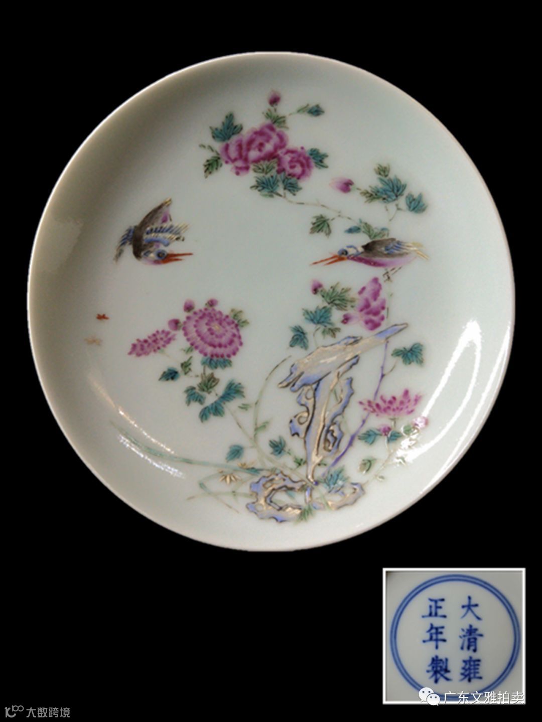 拍号 66 清雍正洋彩洞石花鸟碟 直径12×3cm
