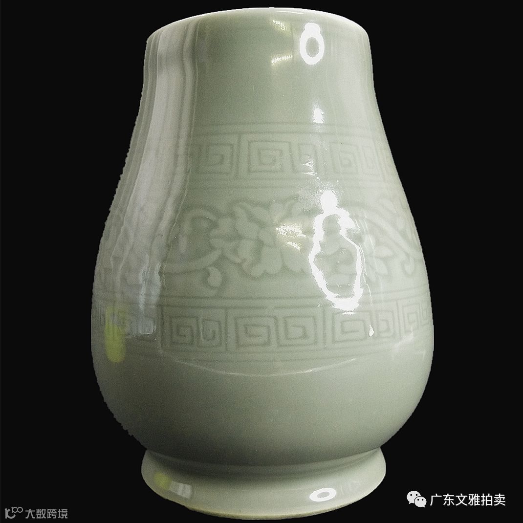 拍号 16 清初豆青暗刻缠枝花樽 高15.5×10cm