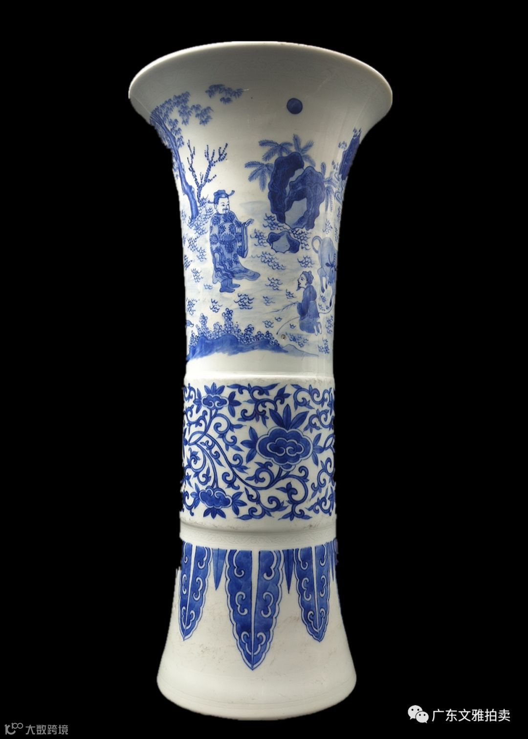 拍号 14 明崇祯暗刻青花人物故事花觚 高46.5×20cm