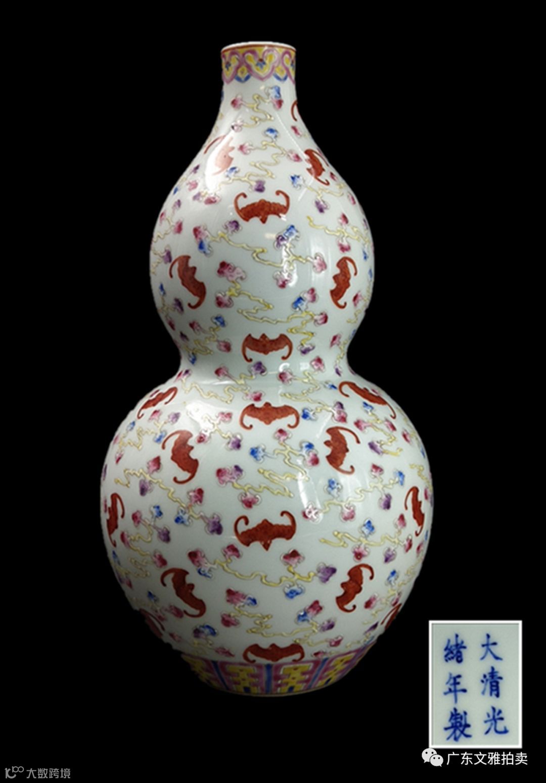 拍号 24 清光绪粉彩鸿福齐天葫芦瓶 高28×11cm