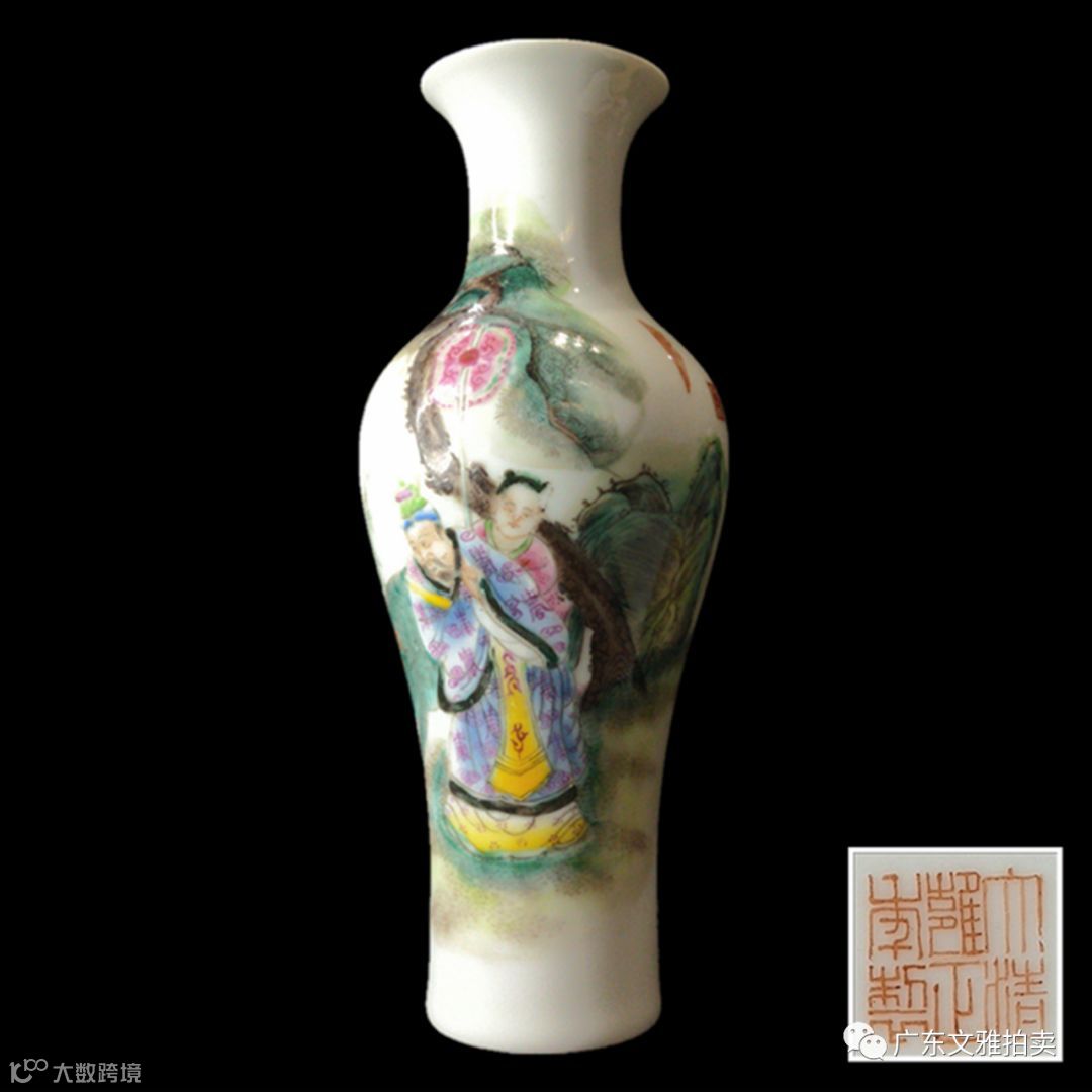 拍号 8 民国 大清雍正年制款珐琅彩人物故事观音樽