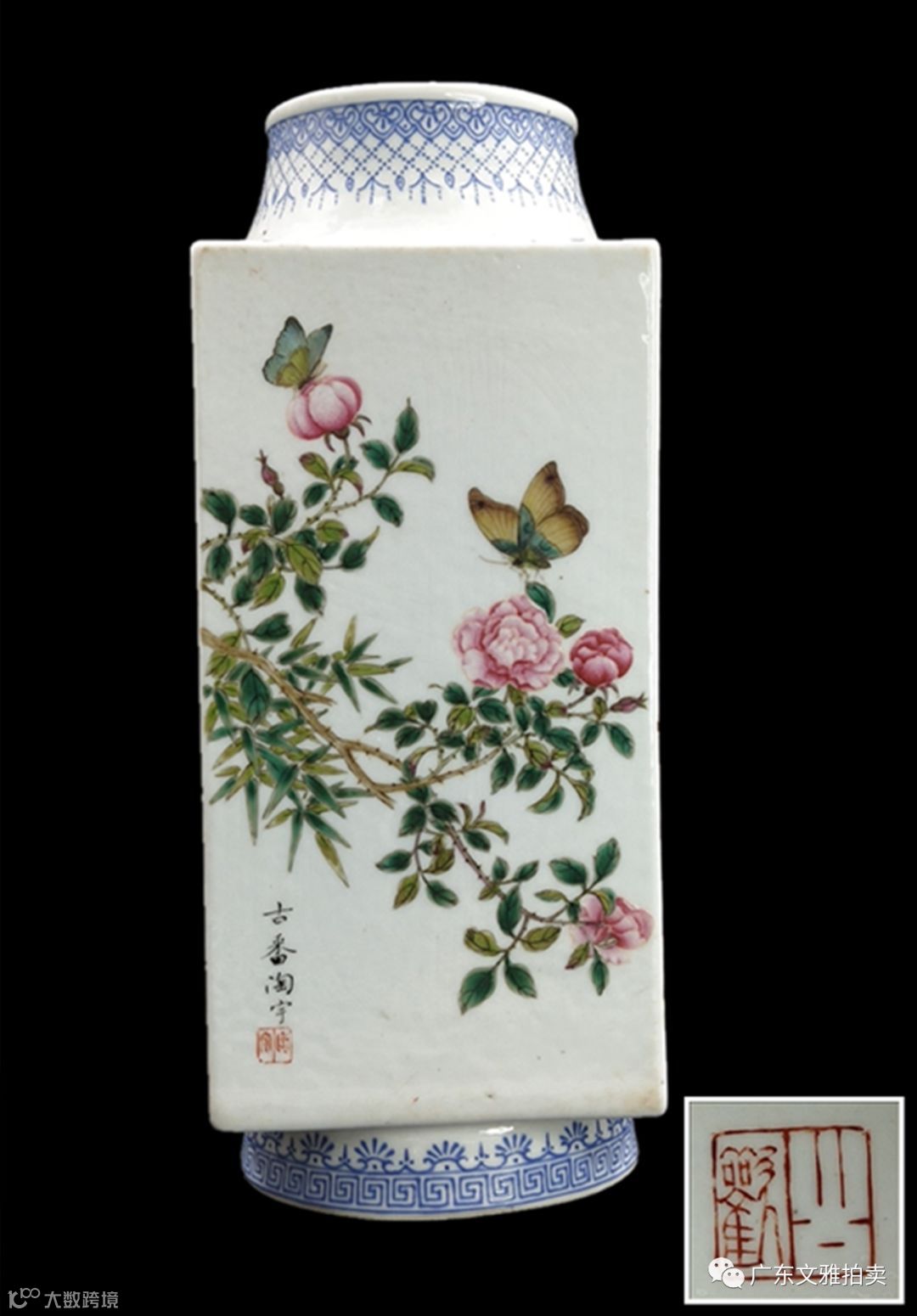 拍号 4 民国粉彩潘陶宇花鸟方瓶 高23×8.5×8.5cm