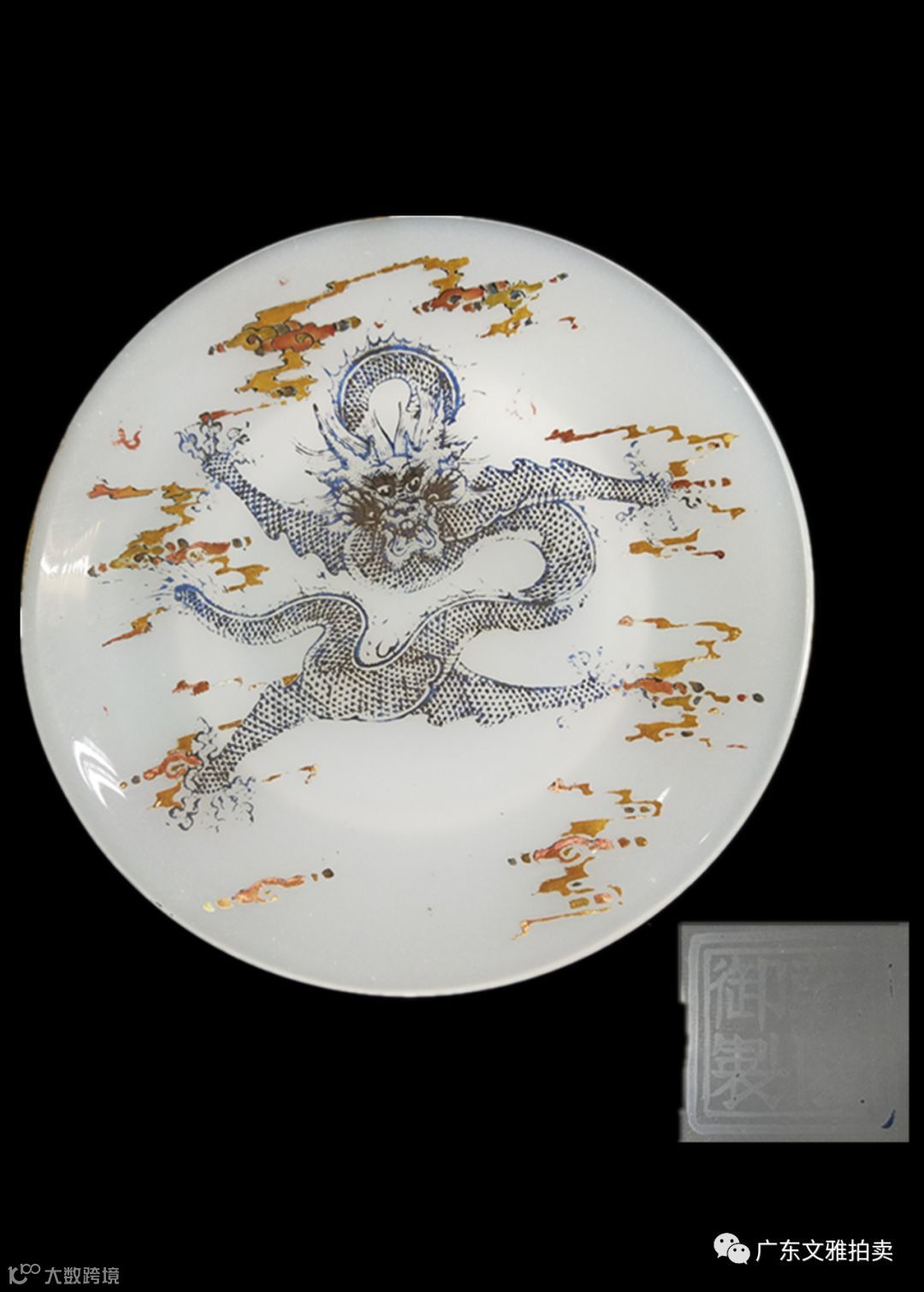 拍号 87 清乾隆御制白瓦料胎珐琅彩云龙碟