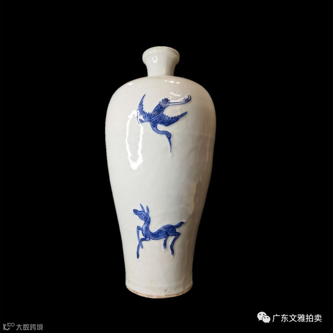 拍号 10 晚明哥釉地青花鹤鹿同春梅瓶 高34×13cm
