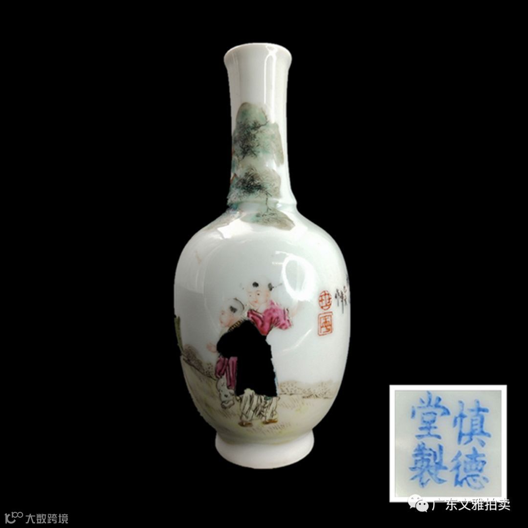 拍号 27 1935粉彩慎德堂制人物故事诗文长颈瓶