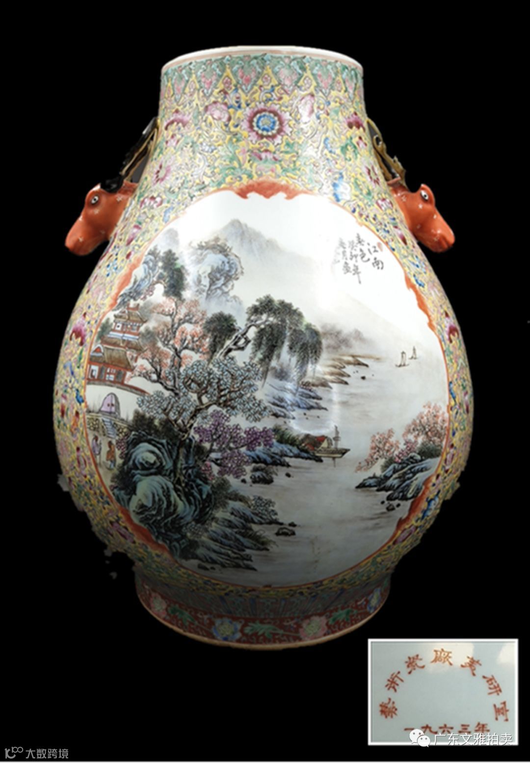拍号 23 1963汪小亭粉彩开光鹿耳瓶(艺术瓷厂美研室)