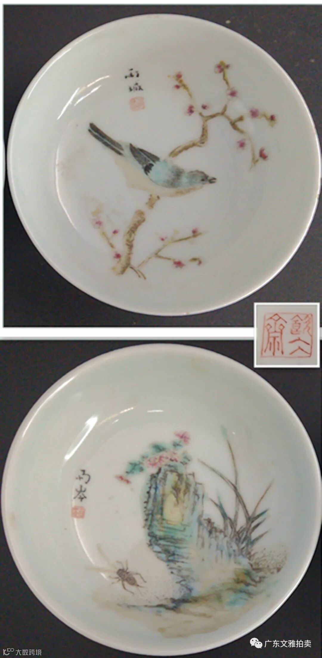 拍号 83 民国刘雨岑花鸟虫草小碟一对