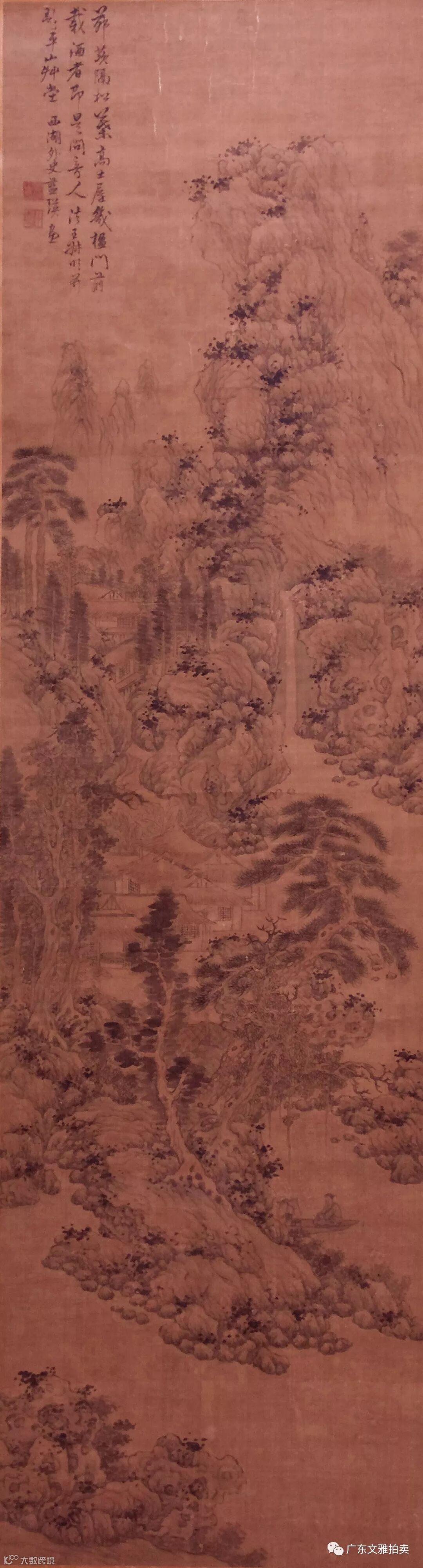 蓝瑛 山水图 绢本立轴 186×51cm 约8.5平尺