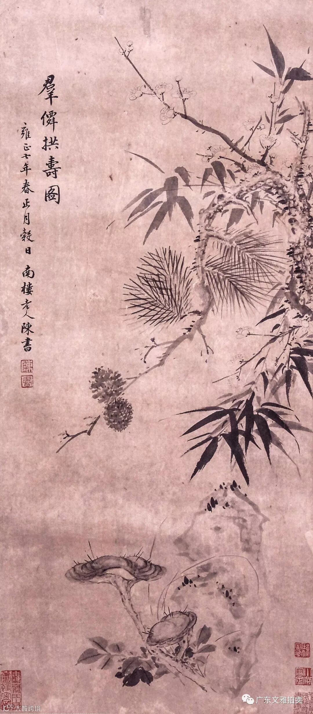 陈书 青拱寿图 立轴 73×32cm 约2.1平尺 起拍价:RMB 60,000