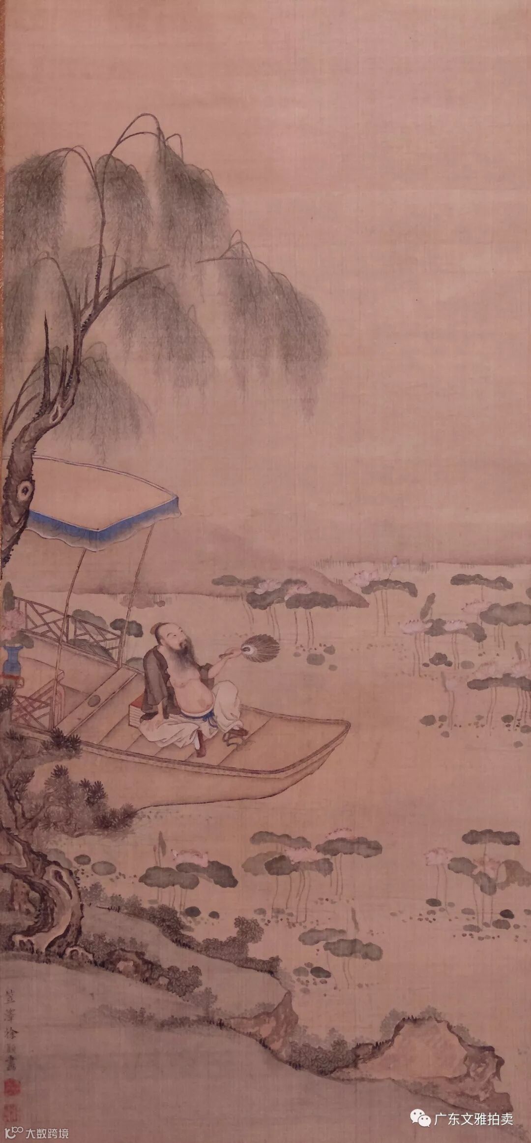 徐颖 赏荷图 绢本立轴 103×48cm 约4.4平尺 起拍价:RMB 80,000