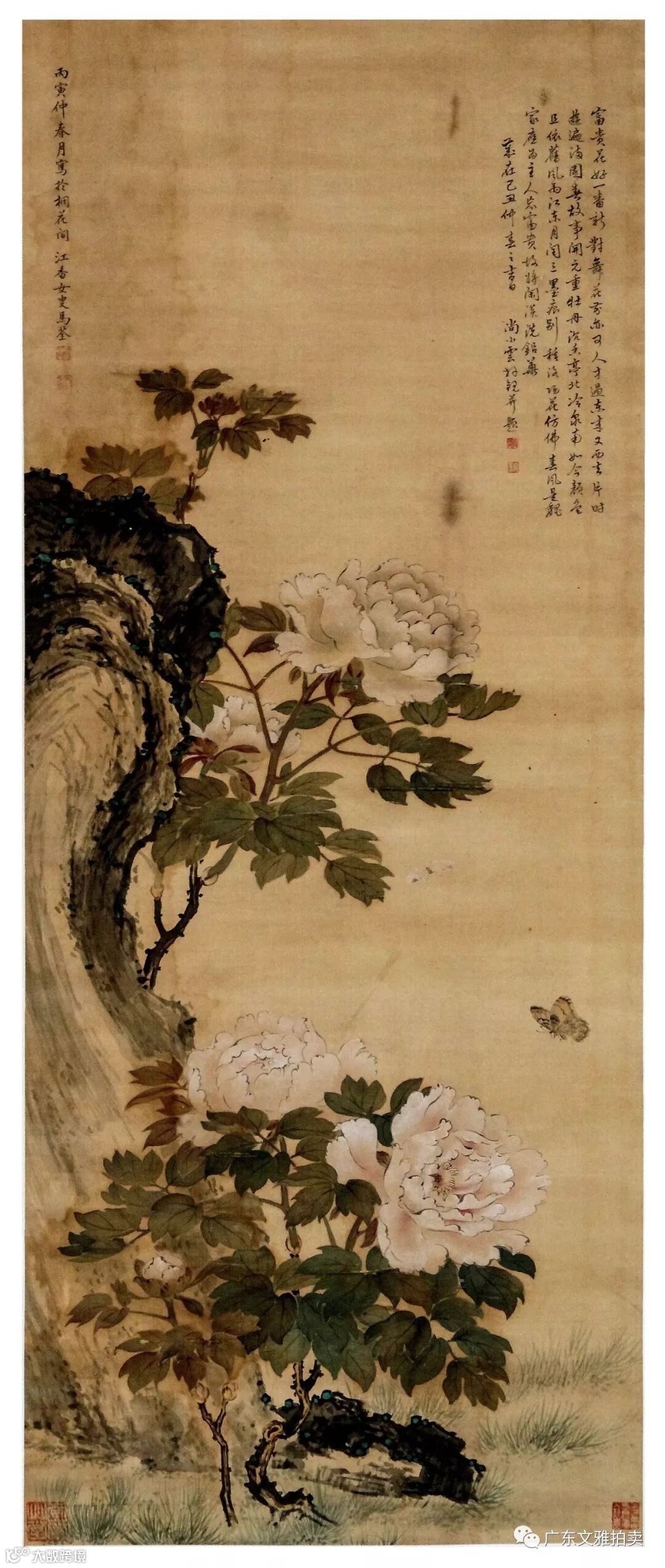 马荃 牡丹花蝶图 立轴 115×46cm 约4.8平尺 起拍价:RMB 8,000