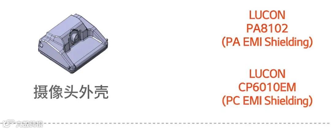 - 摄像头外壳:PA和PC材料,具备优异的电磁屏蔽性能,可采用碳纤维+碳纳米管替代金属,又具备高强度、高刚度、良好的导热性和尺寸稳定性,保护摄像头的同时提升成像质量。