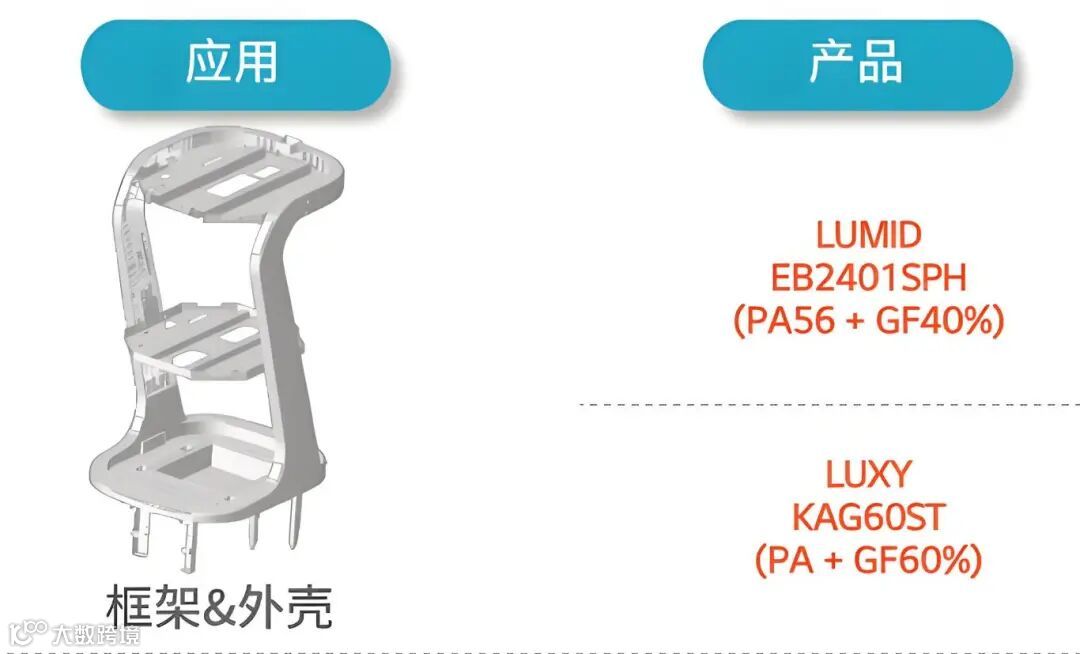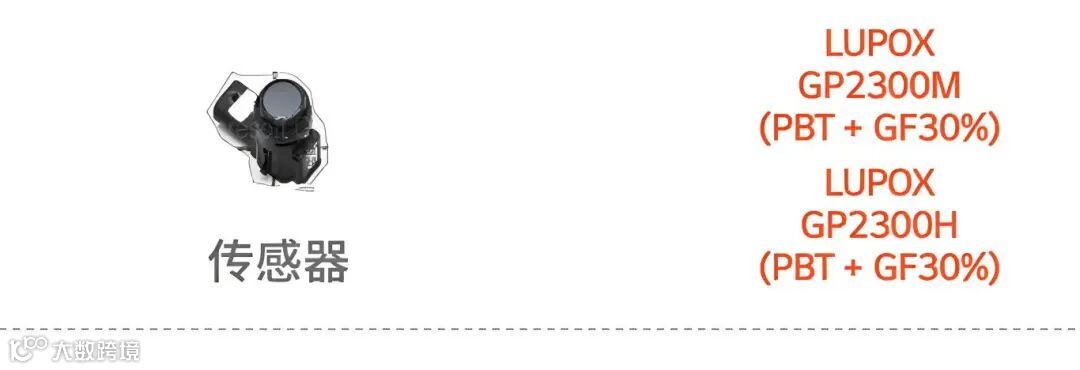 - 传感器:PBT +GF30%材料,凭借高强度、高模量、良好的尺寸稳定性以及出色的激光打标和焊接性能,成为传感器组件的优质选择,确保传感器精准感知外界信息。