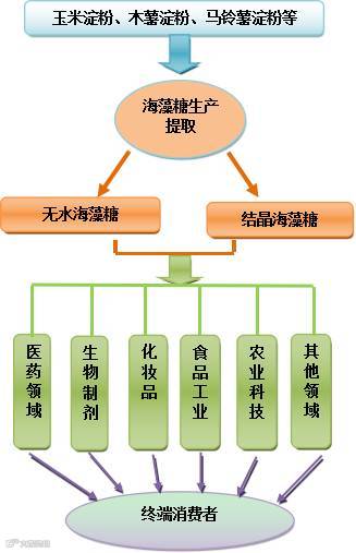 整个海藻糖产业链大致可以分为三段,每段都包括几个环节。