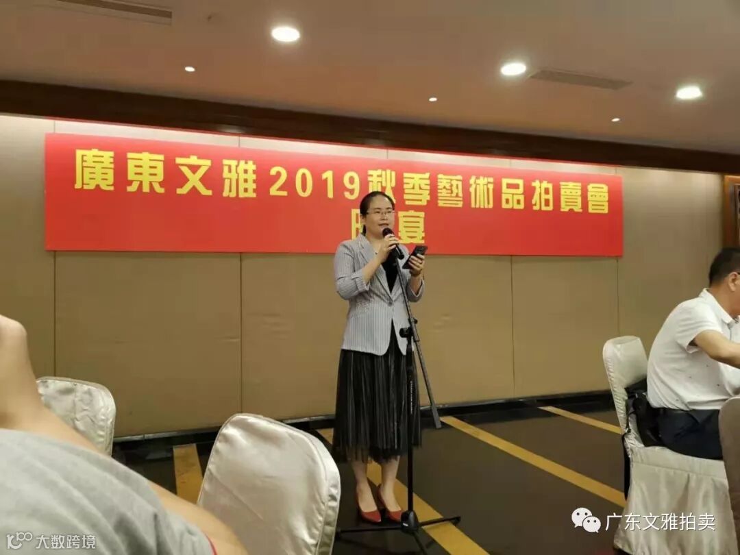 ▲广东文雅拍卖有限公司副总经理黄容华女士向贵宾致欢迎词