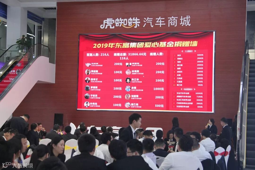 表彰环节结束,年会的议程进入晚宴部分,晚宴在虎蜘蛛汽车商城东莞总店举办。