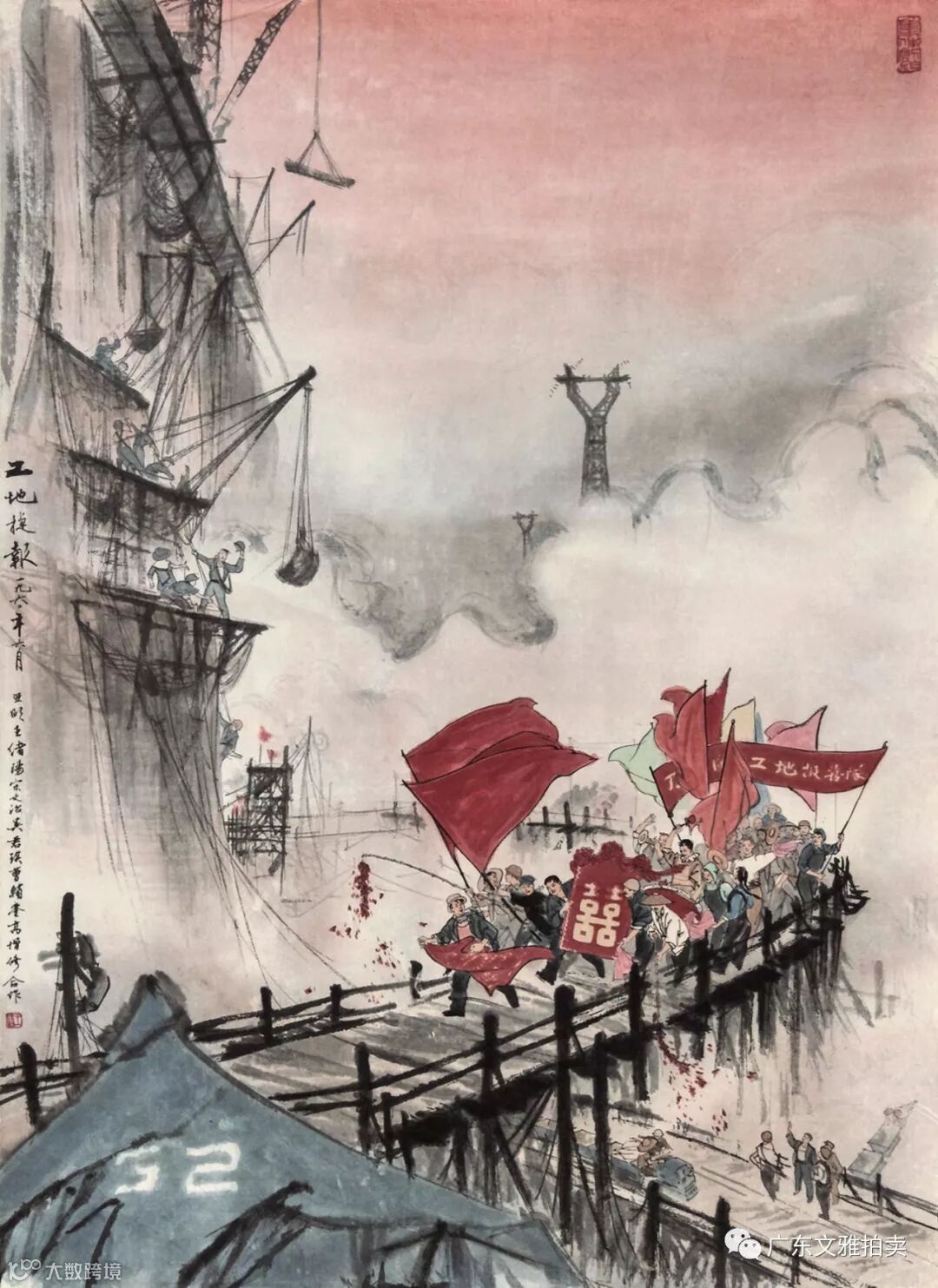 亚明 宋文治 王绪阳 等 工地捷报 立轴 58×42cm 起拍价 RMB 5,000