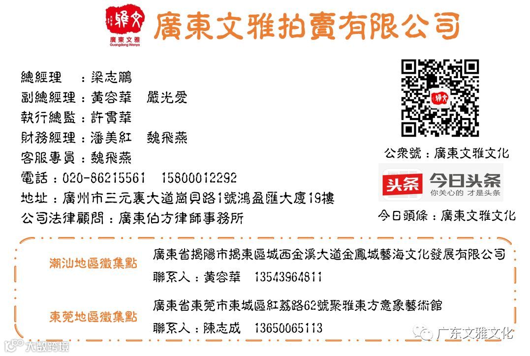 广东文雅拍卖作为文物艺术品拍卖行业的新成员和新生力量,我们完全理解与支持协会此次的会议精神和相关政策,同时广东文雅拍卖也将一如继往的严格执行包括国家《拍卖法》、《文物保护法》和《文物艺术品拍卖规程》等法律法规,诚信、合法、务实的开展业务!