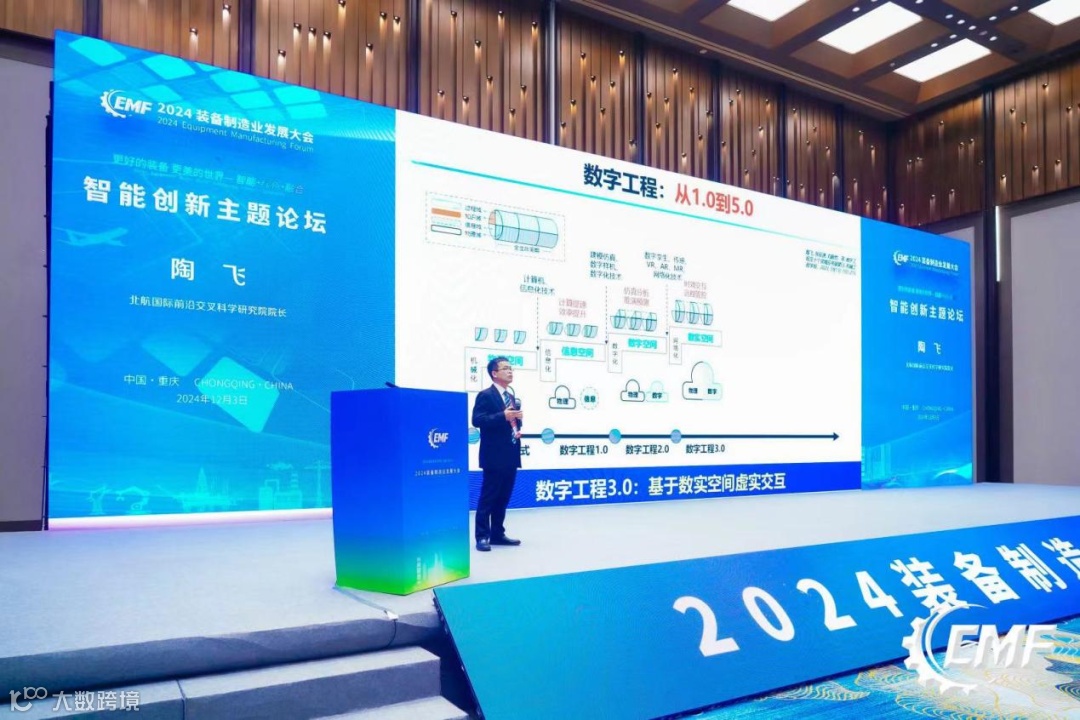 北航国际前沿交叉科学研究院院长陶飞做了《复杂装备生命周期数字工程理论与实践探索》报告,他分享了关于中国20年数字化进程的思考和数字工程的实现路径,并讨论了数字孪生如何帮助装备行业数字化发展。他表示,当前数字孪生领域进入高速发展期,未来每一个产品、装备或系统都会有自己伴随终生的数字孪生体。
