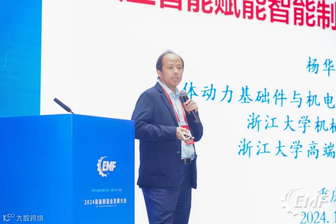 杨华勇院士做了《人工智能赋能智能制造数字底座的探索》报告。他重点阐述了智能制造数字底座的技术架构与主线应用,并分享了AI与制造业高质量发展的方向、方法与挑战,详尽阐述了高端装备大模型的共性挑战及业务场景。他表示,数据+AIGC从面向数据向面向智能体,将重构工业的技术体系。