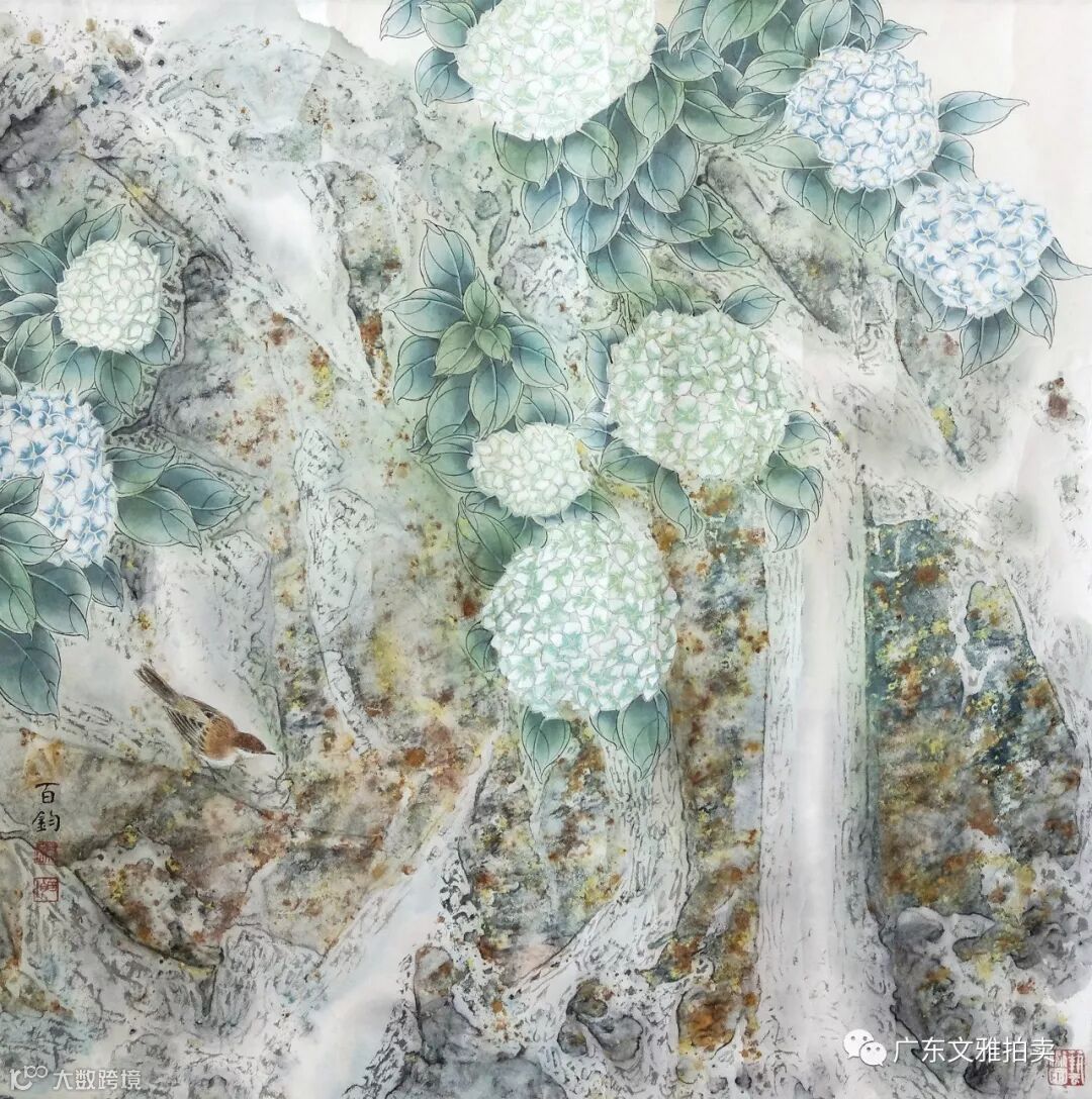 苏百钧 花鸟 镜片 68×67cm 约4.1平尺 起拍价RMB 80,000