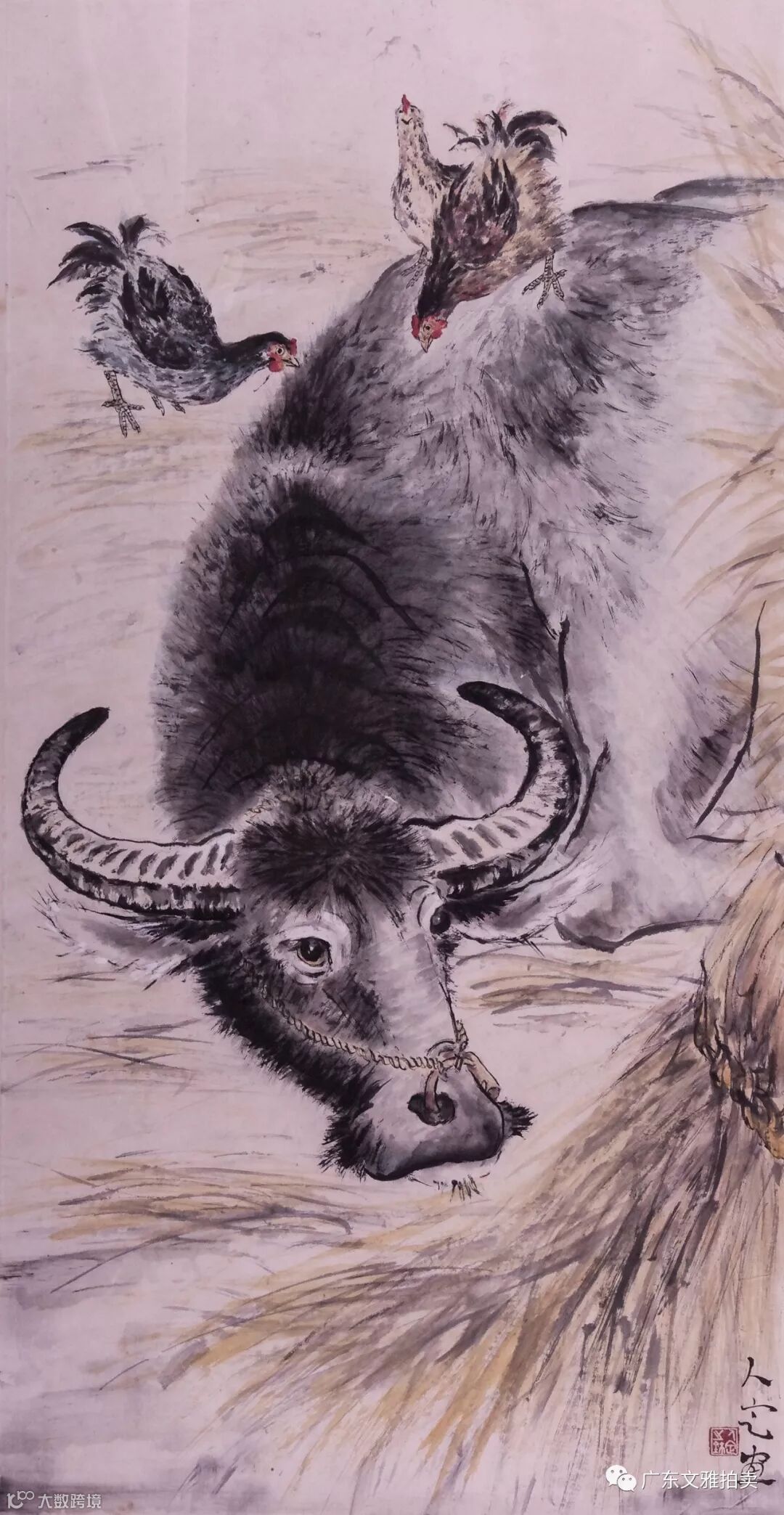 方人定 牧牛图 镜框 137x69.5cm 约8.6平尺 起拍价RMB 60,000