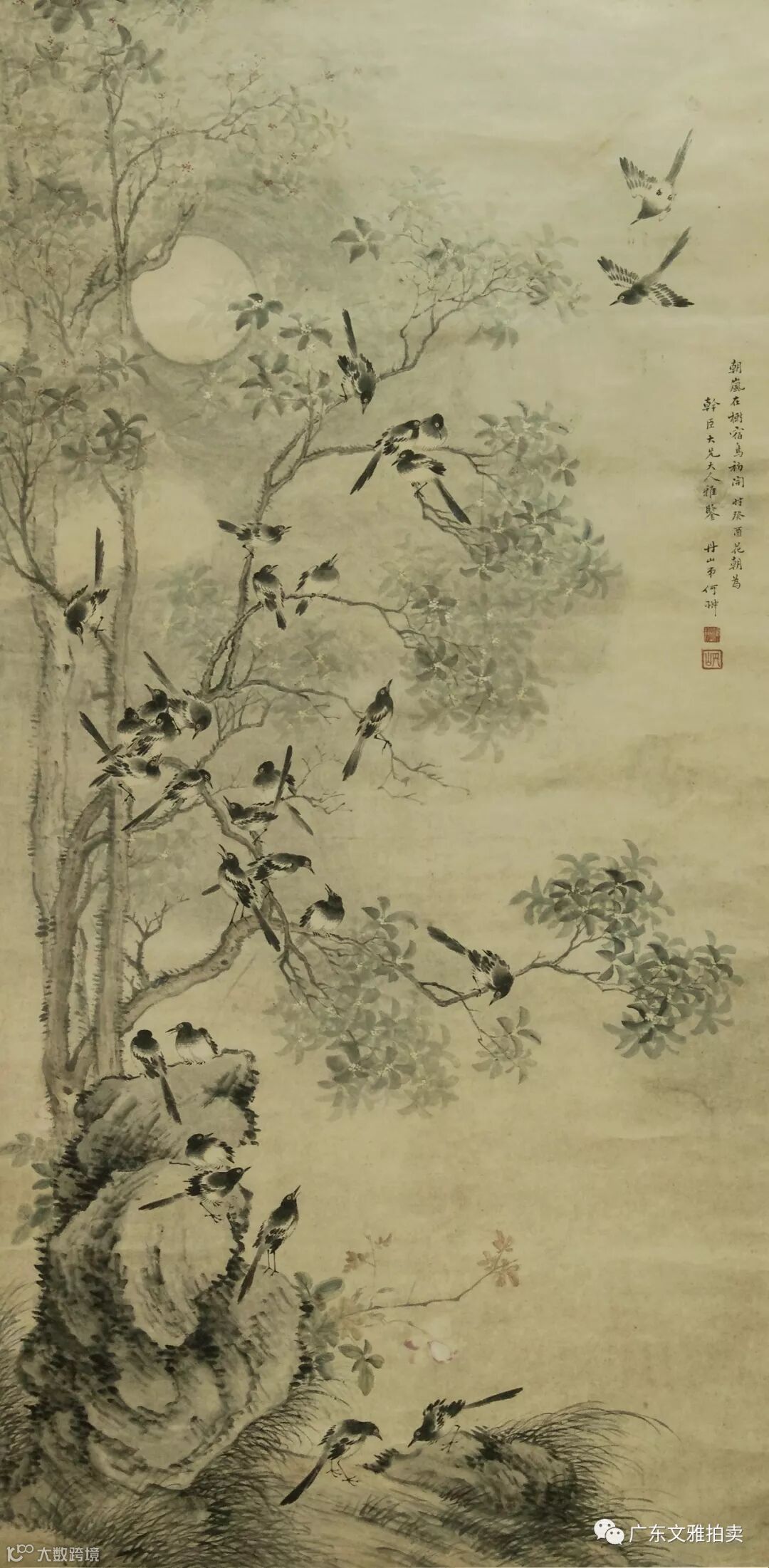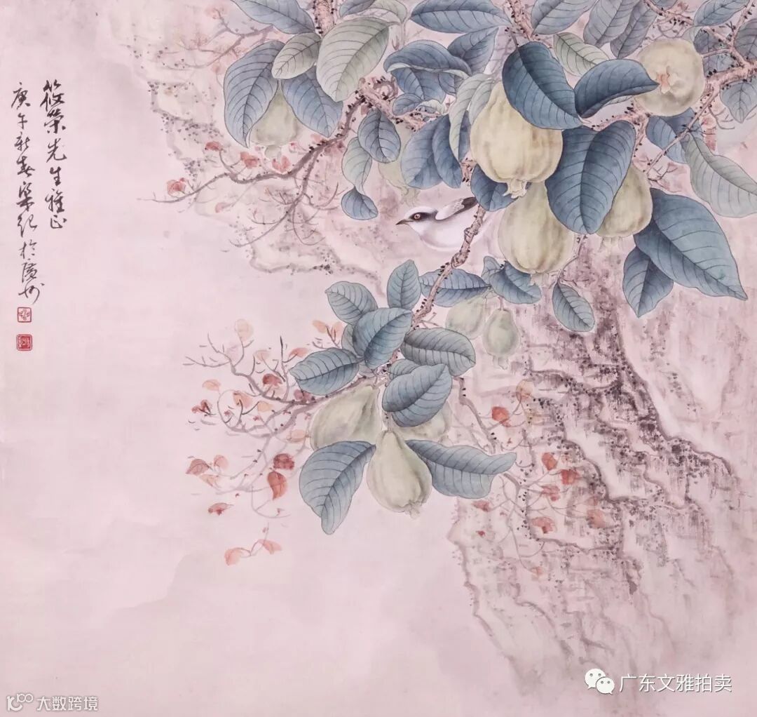 梁纪 花鸟 镜片 67×69cm 约4.2平尺 起拍价RMB无底价