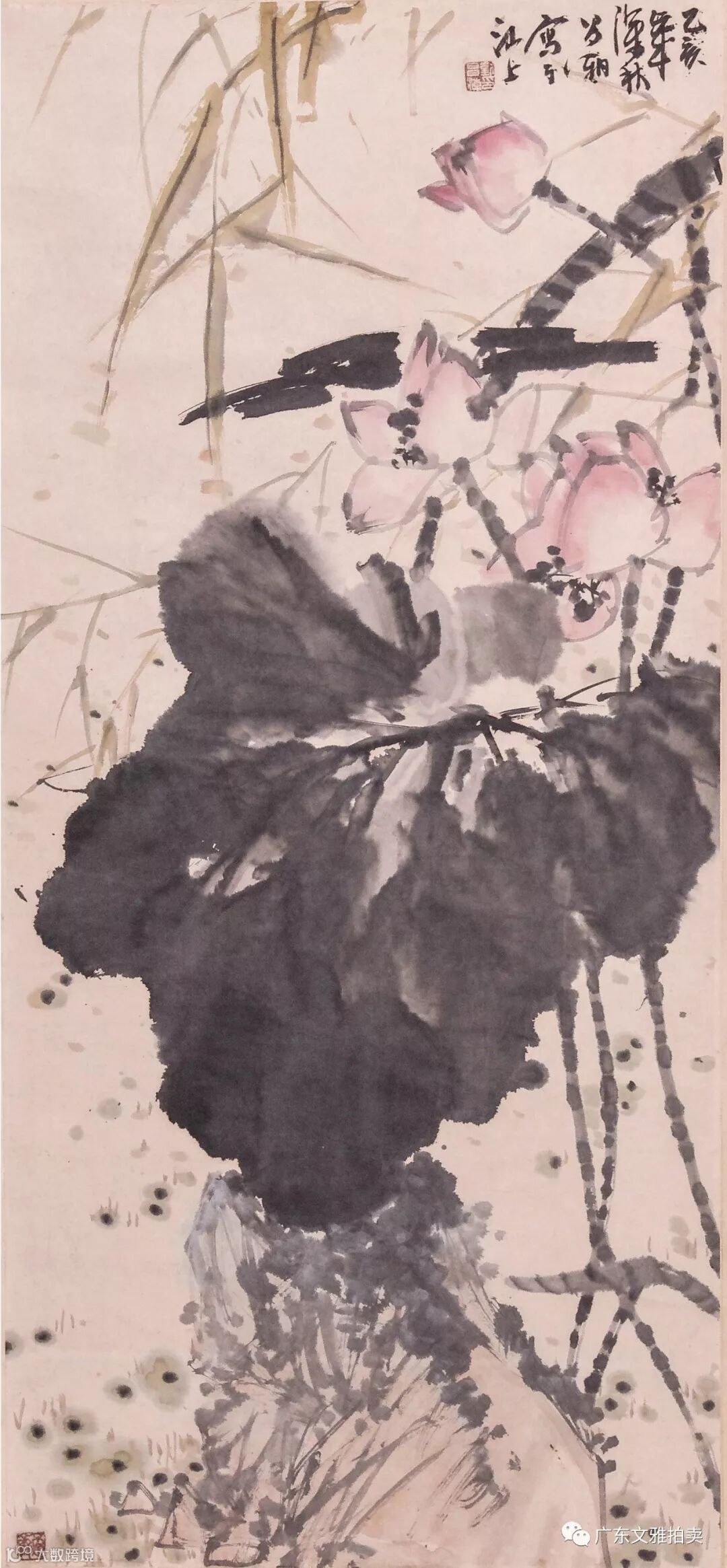 刘昌潮 荷花 镜片 104×47cm 约4.4平尺 起拍价RMB6,000