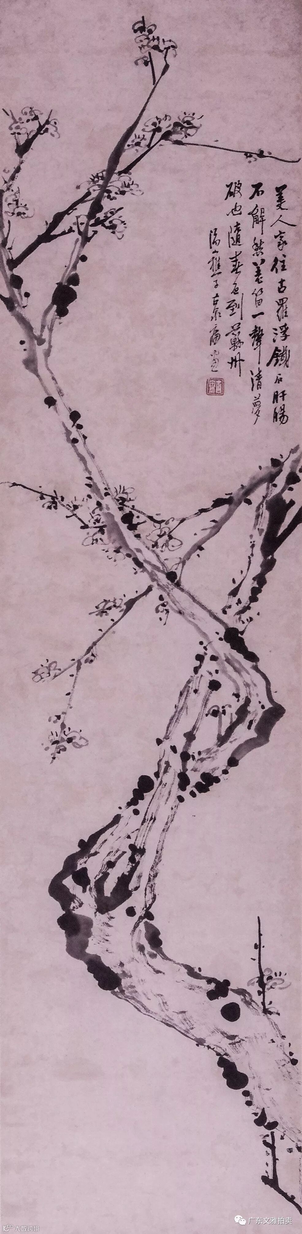 居廉 墨梅 镜框 130×31cm 约3.6平尺 起拍价RMB 28,000