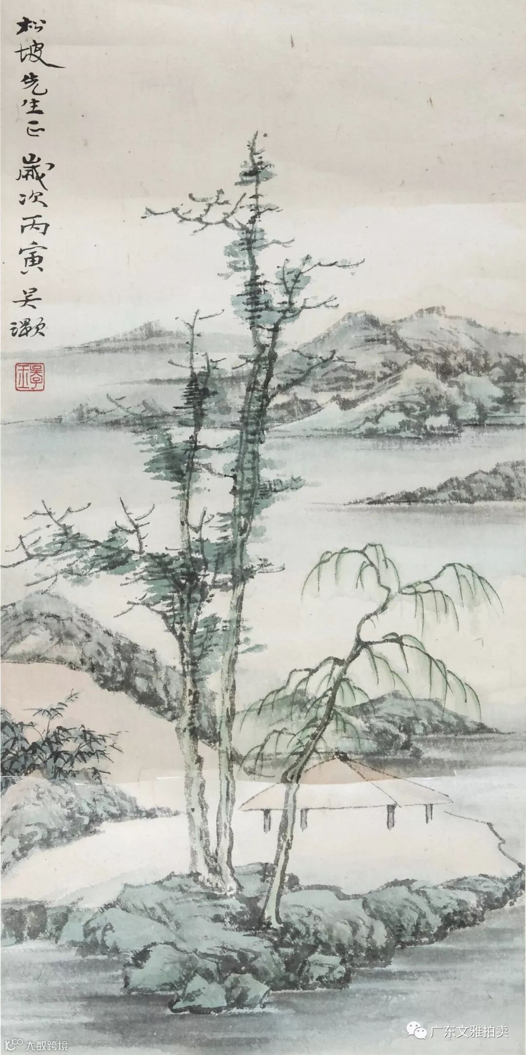 吴灏 山水 镜片 56×26cm 约1.3平尺 起拍价RMB8,000