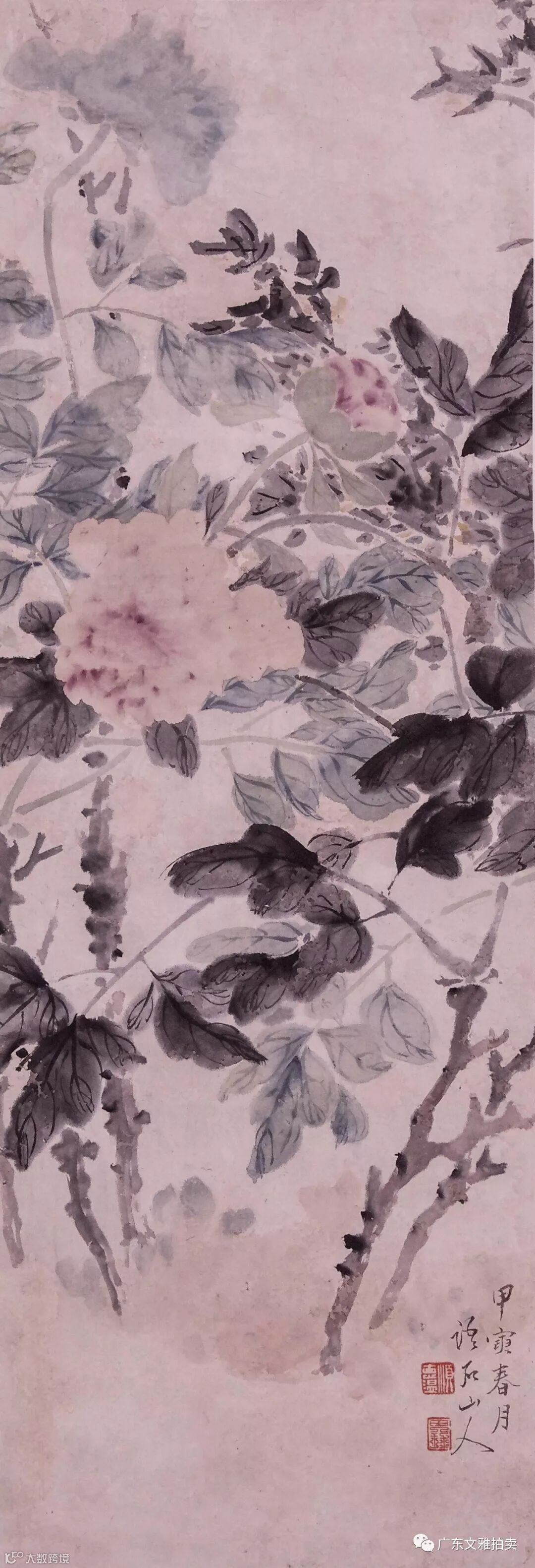 温其球 花卉 立轴 82×28cm 约2.1平尺 起拍价RMB无底价