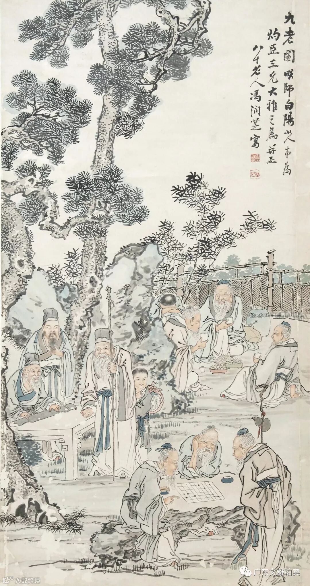 冯润芝 九老图 立轴 122×63cm 约6.9平尺 起拍价RMB3,000
