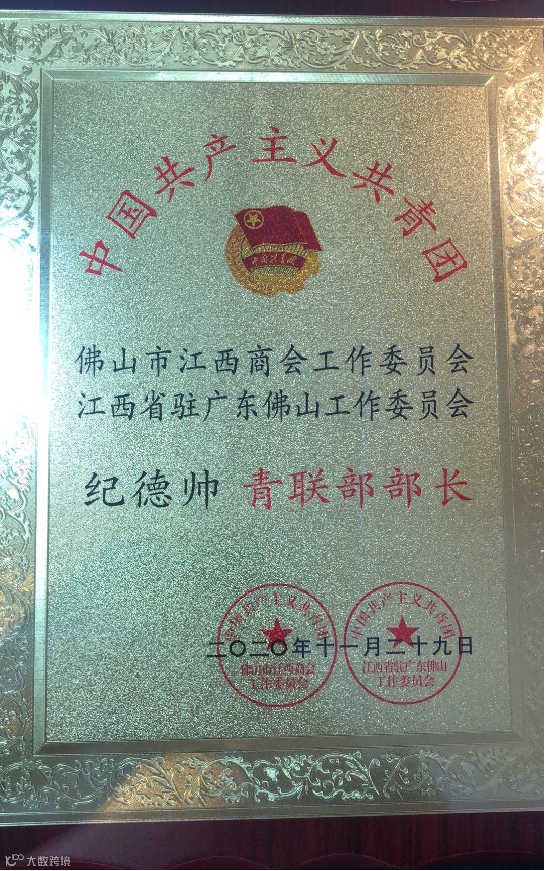 2020年11月,佛山江西商会团工委/江西团省委佛山团工委完成换届。很荣幸,我司总经理纪德帅担任青联部部长。