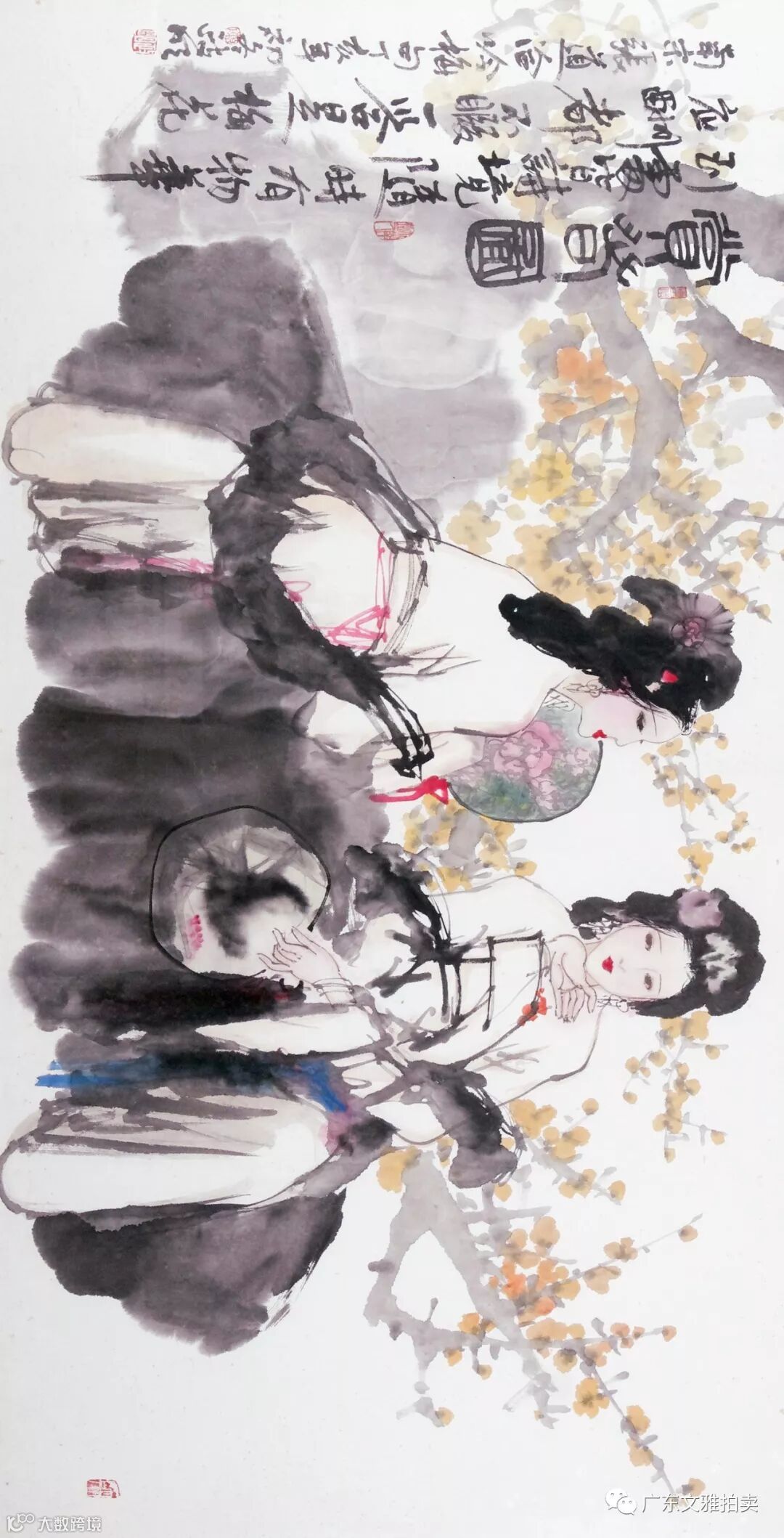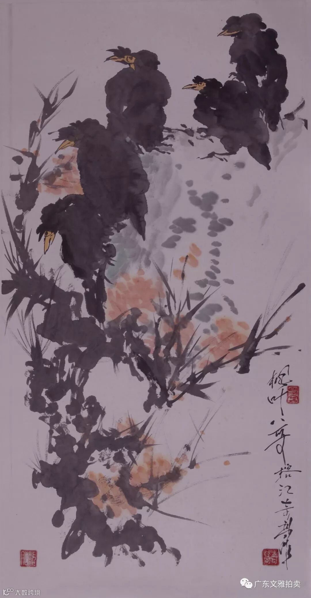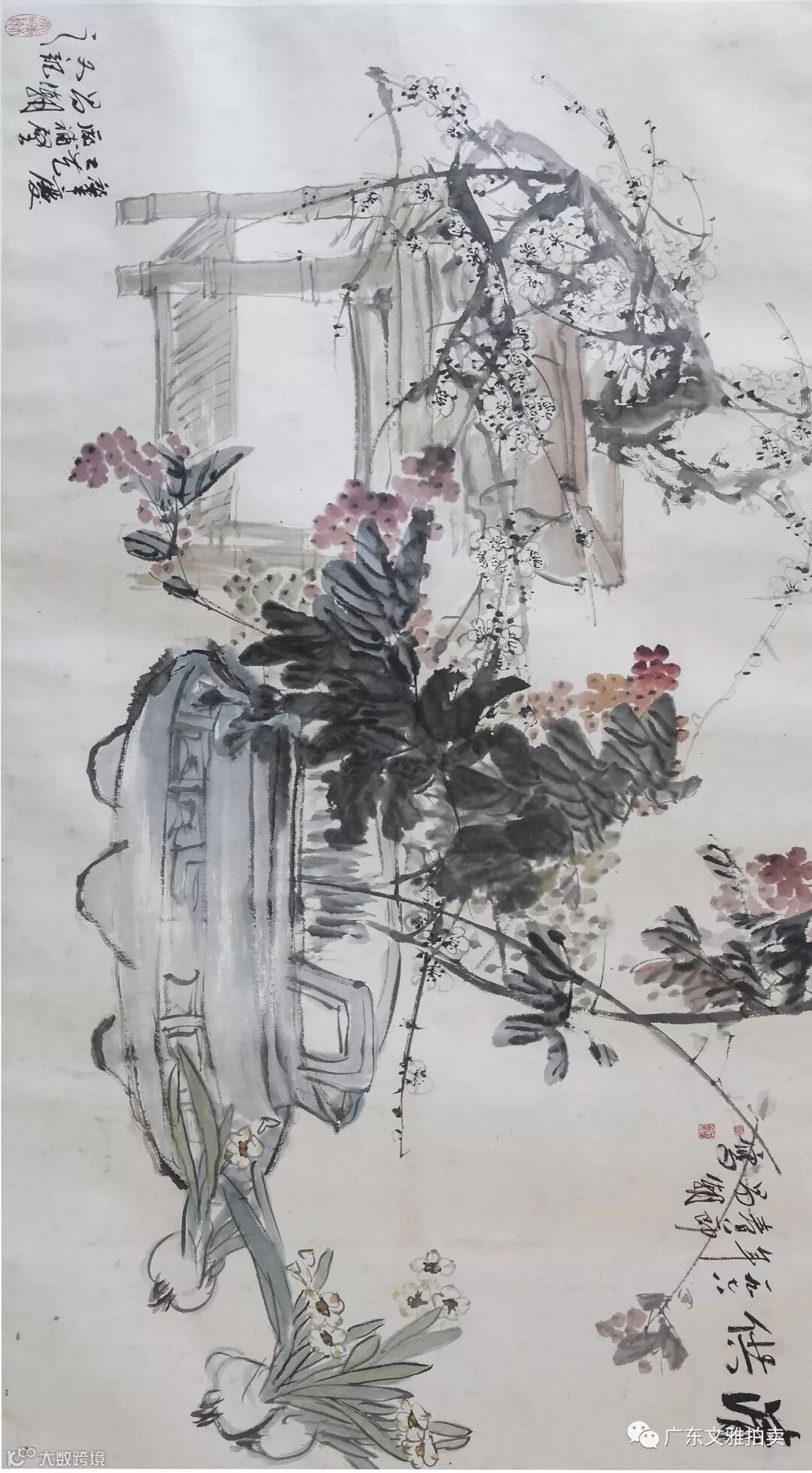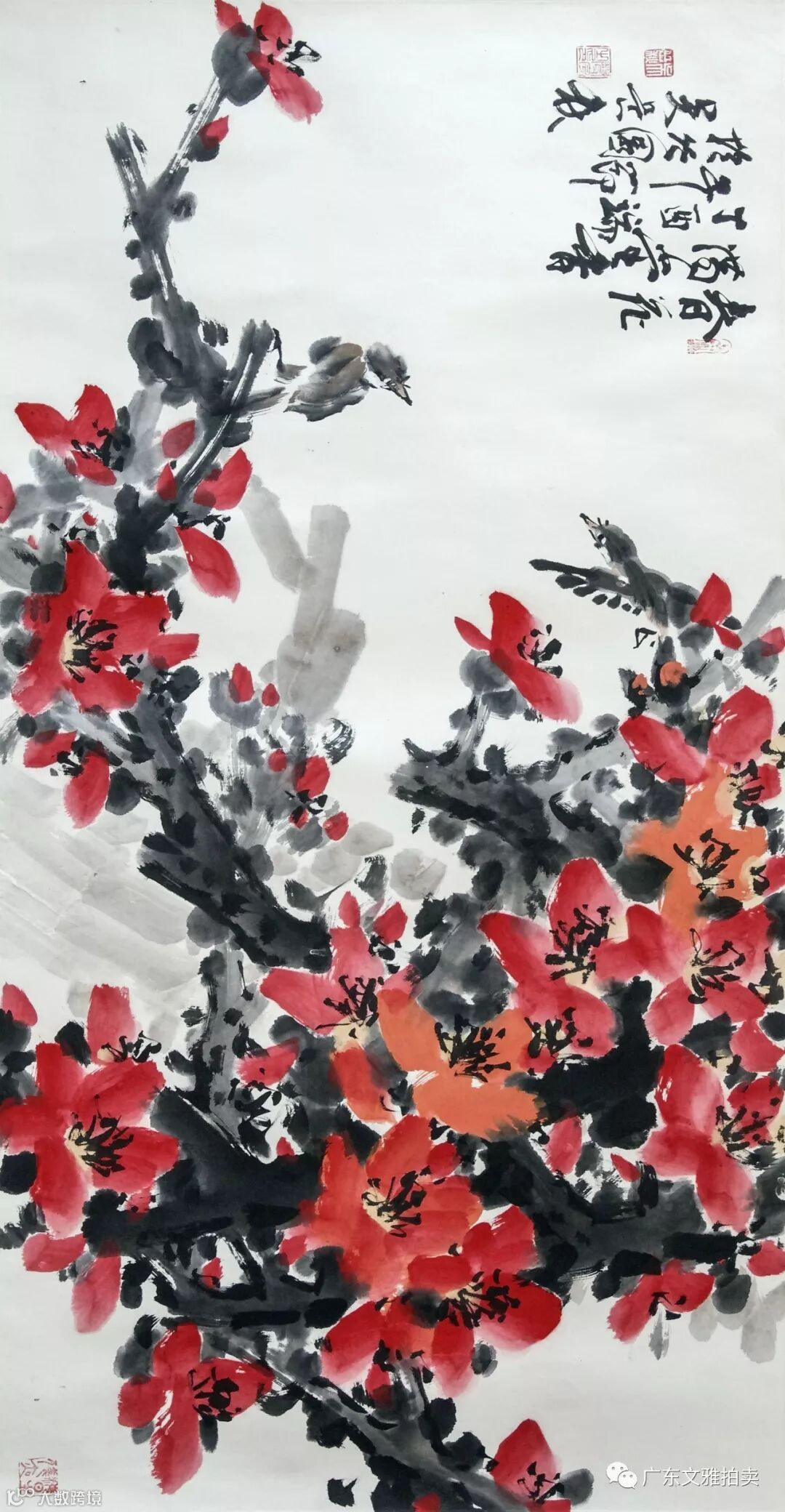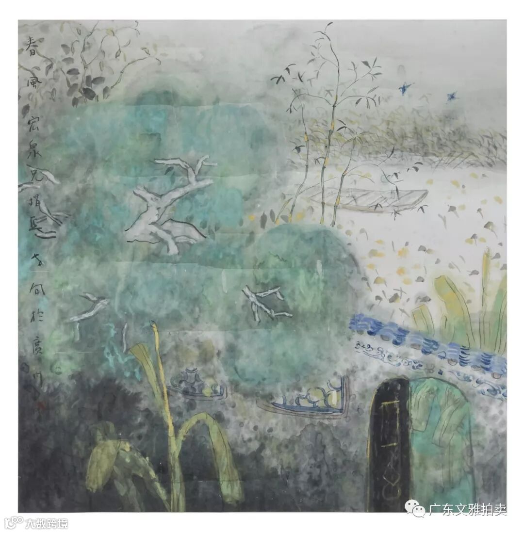 吴岳秋 春华镜片 69×136cm 约8.4平尺 起拍价RMB 18,000
