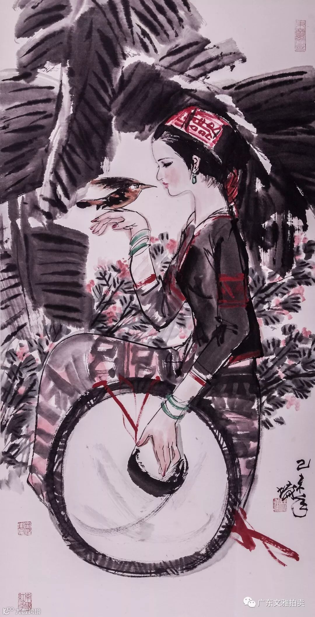 林墉 蕉叶仕女 镜框 137x70cm 约8.6平尺 起拍价RMB 25,000