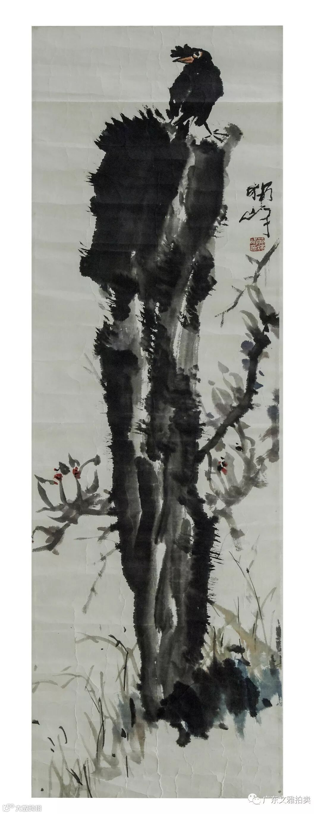 黄独峰 山鸟 镜片 118×34cm 约3.6平尺 起拍价RMB 8,000
