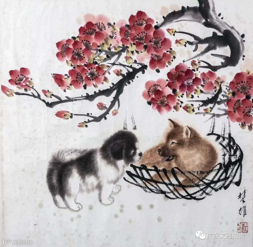 方楚雄 戏犬图 镜框 68.5x69cm 约4.3平尺 起拍价RMB 无底价