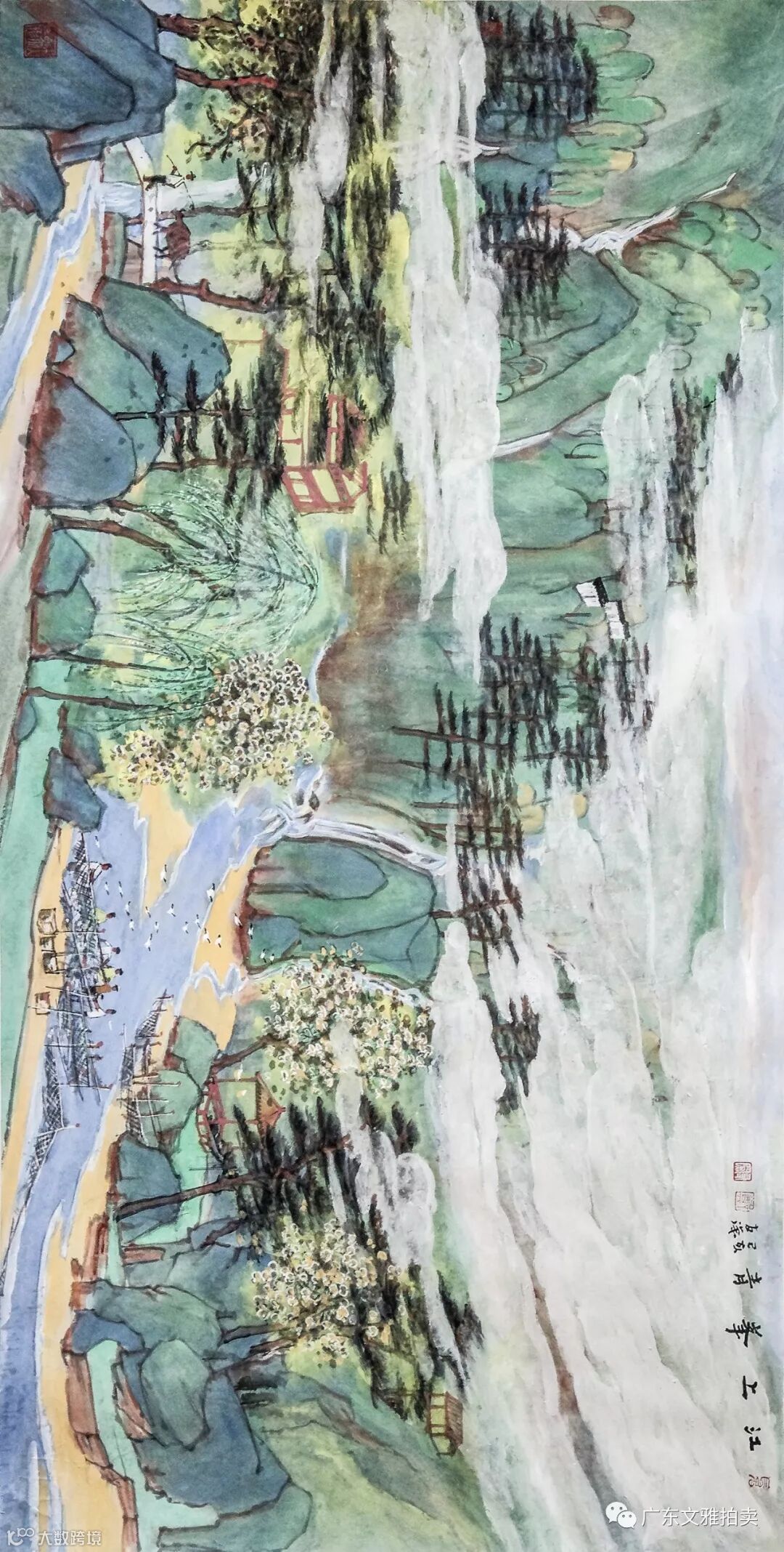 郑友深 江上峯青 镜片 68×136cm 约8.3平尺 起拍价RMB 45,000