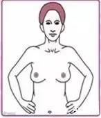 3、双手放在腰部,用力按压胸部肌肉紧张起来,是否有不同以往的线条,异物突起。
